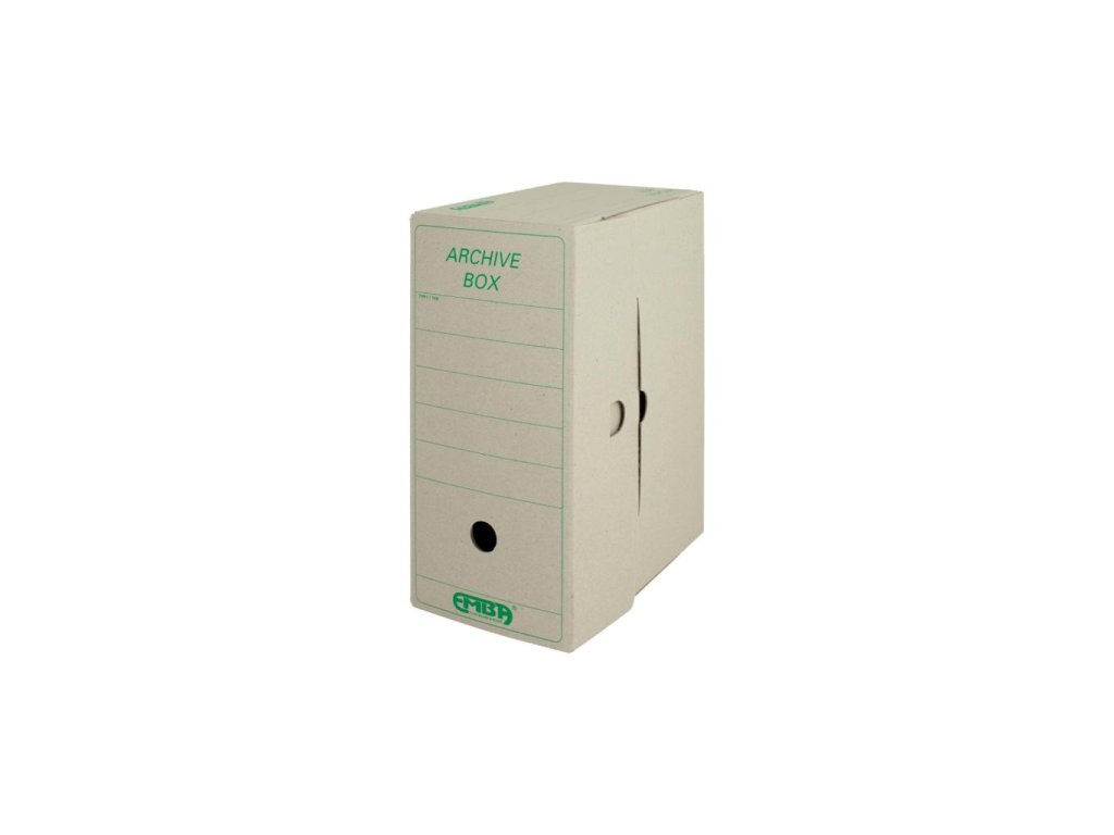 Ekologický výrobok. Box z recyklovanej špeciálne impregnovanej lepenky odolnej voči atmosfeérickej vlhkosti na dlhodobé uloženie záznamov. Tri varianty postavenia, kvalitná sieťotlač. Vhodný v kombinácii so skupinovým boxom. Väčšie balenie 25 ks.Rozmery šxvxd : 150x330x260 mm