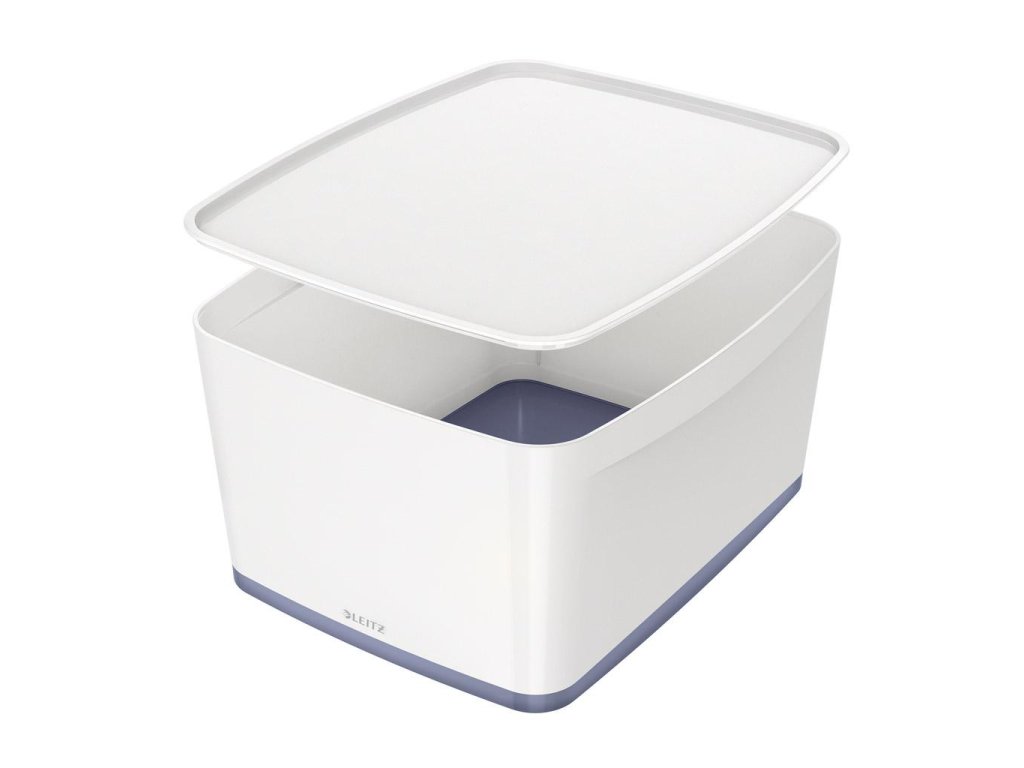 Úložný box s vekom Leitz MyBox, veľkosť L biela/sivá