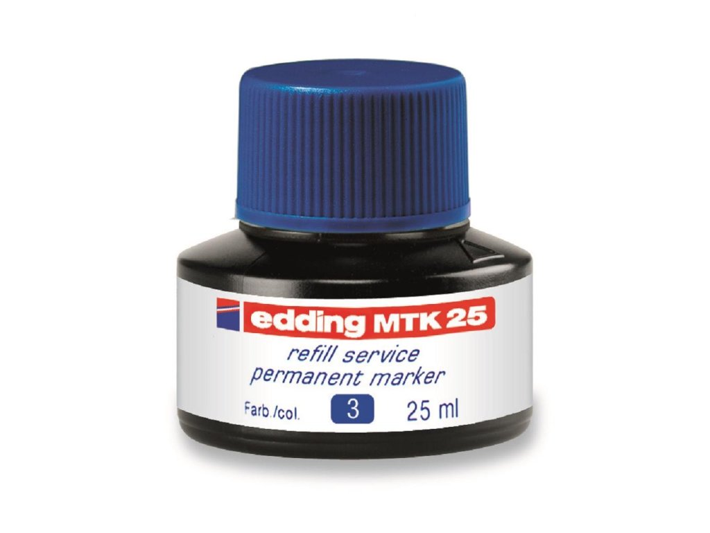 Atrament slabého zápachu s kapilárnym systémom na dopĺňanie permanentných popisovačov edding 2000/-2000 C, 2200/-2200 C, 400, 300, 330 a 370. Obsah 25 ml. Tento chemický prípravok je nebezpečný. Pri dopĺňaní vložte prednú časť popisovača špičkou do fľaštičky a po niekoľkých minútach bude popisovač pripravený k opätovnému použitiu. Obsah 25 ml.Farba: modrá
