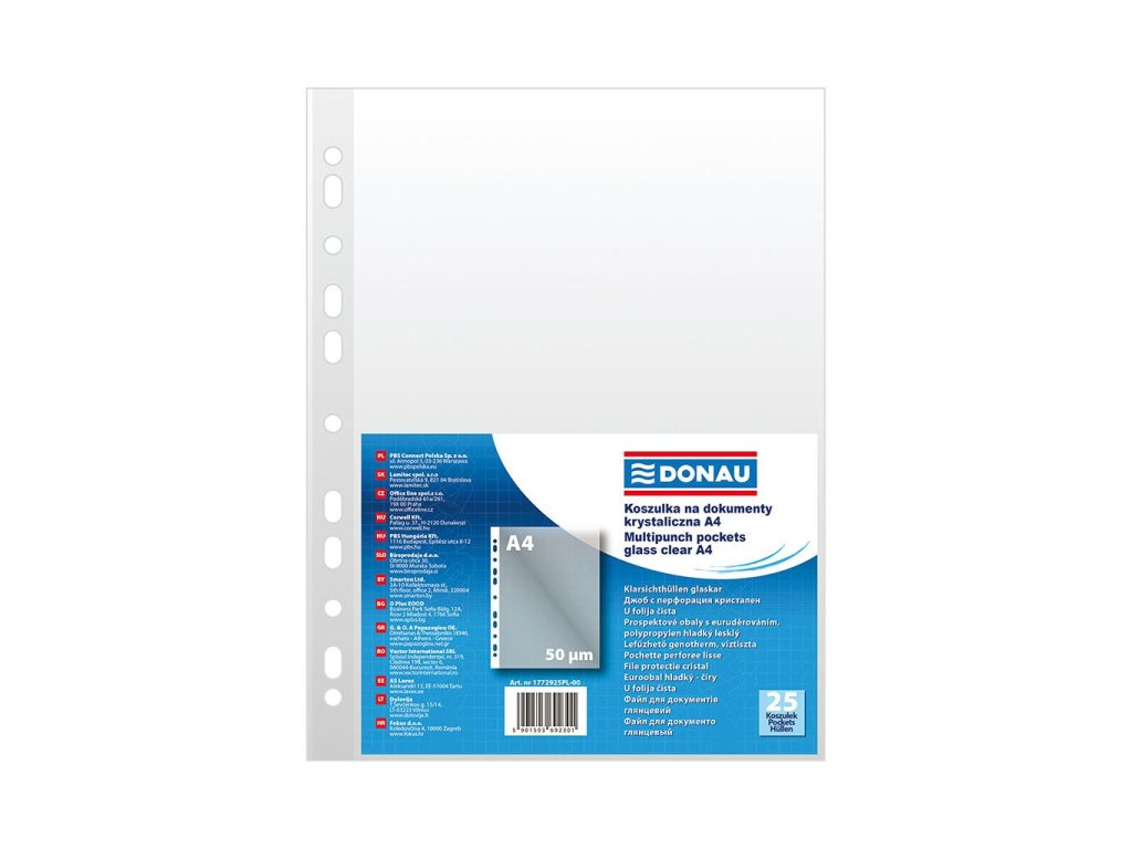 Priehľadné číre euroobaly z polypropylénu. Otvor zhora, eurodierovanie, povrch lesklý a hladký. Formát A4. Hrúbka 50 mic. Balenie 25 ks.Dodatočné parametre