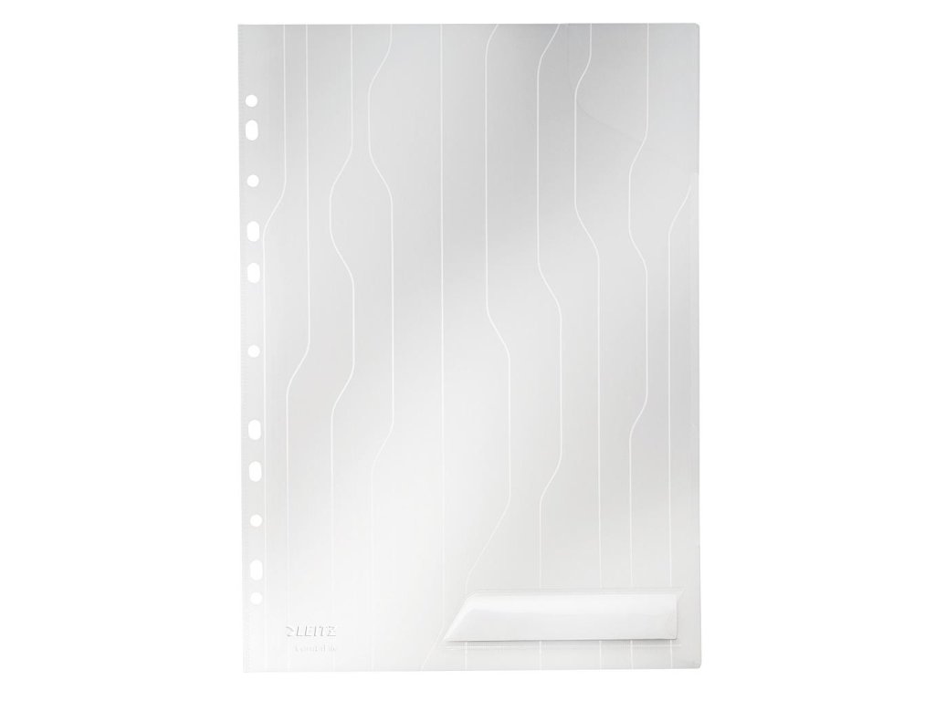 Unikátny závesný obal typu `L`, ktorý kombinuje vlastnosti euroobalov a obalov vďaka patentovanej skrývateľnej multiperforácii do špeciálneho puzdra. Obsahuje rohovú chlopňu, ktorá chráni vložený dokument a vrecko na popis obsahu s vymeniteľným štítkom. Vyrobený z kvalitného priehľadného PP s embosovaným vzorom. Hrúbka 200 um. Kapacita 40 listov papiera formátu A4.Farba: priehľadná