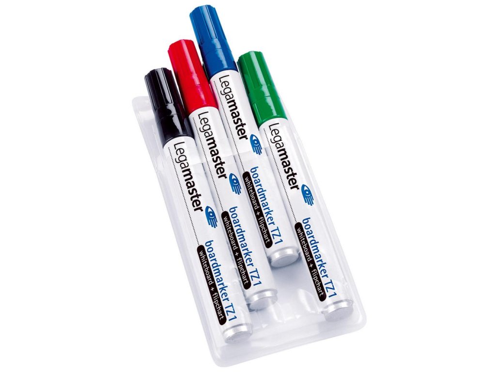 Sada popisovačov na biele tabule s hliníkovým telom. Hrot okrúhly, šírka stopy 1,5 - 3 mm. Vymeniteľná špička. Dopĺňateľné atramentom obj. kód LM1199 01 - 4.Farba: mix 4 farieb
