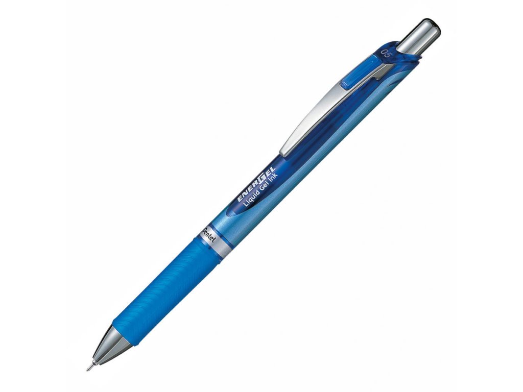 Najkvalitnejší roller s dokumentačným atramentom. Stláčací mechanizmus, telo s kovovými doplnkami, pogumovaný úchyt, rýchloschnúca gélová náplň. Väčšie balenie 12 ks v jednej farbe. Farba modrá.Pentel Energel 0,5 mm