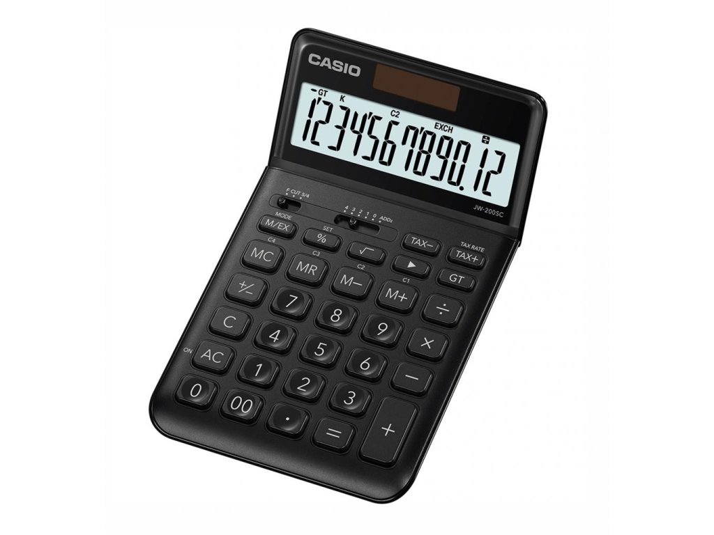 Stolová kalkulačka s veľkým 12-miestnym naklápacím LCD displejom so zobrazením funkcií a kovovým farebným krytom. Opravné tlačidlo a tlačidlá na výpočet odmocniny, daní a prevody mien. Farba čierna.Technická špecifi kácia: