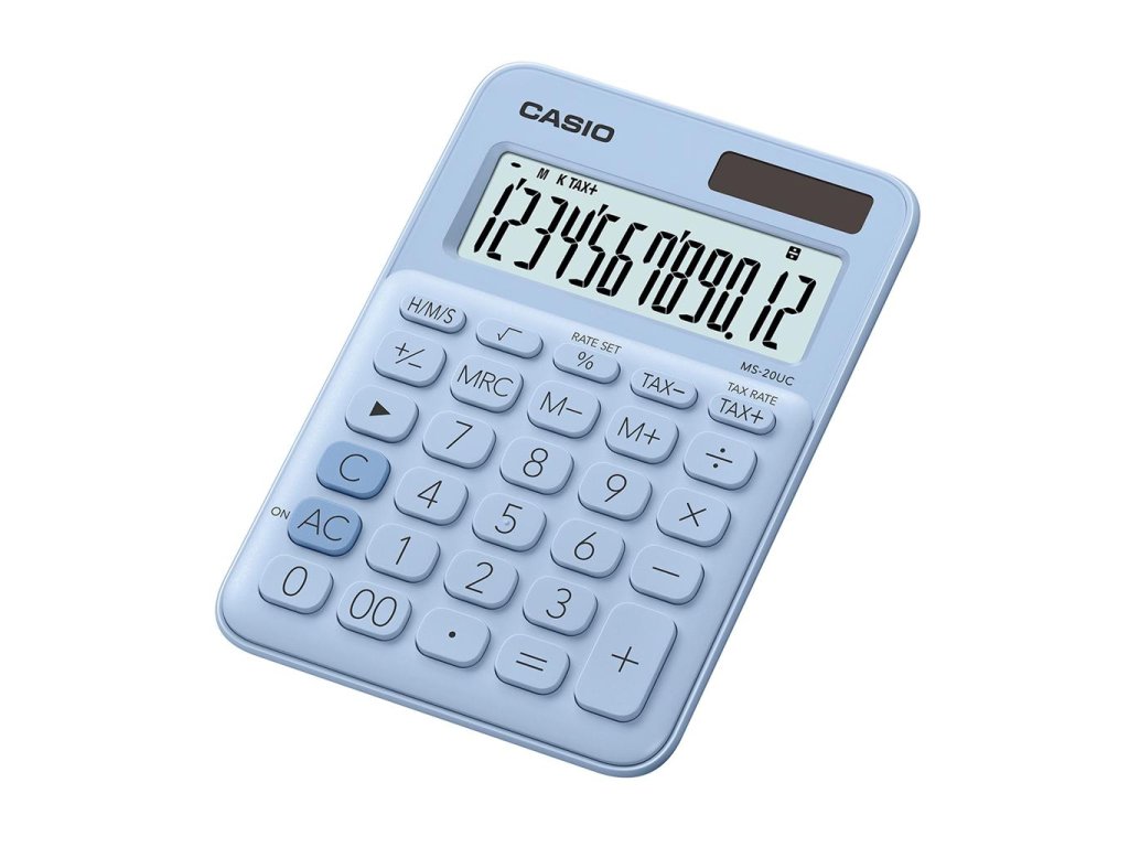 Stolová kalkulačka s veľkým 12-miestnym LCD displejom. Farba svetlo modrá.Technická špecifi kácia