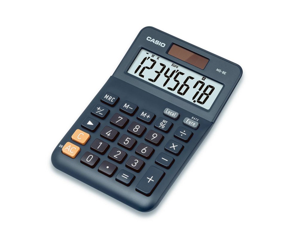 Stolová kalkulačka s 8‑miestnym displejom a plastovými tlačidlami. Opravné tlačidlo a tlačidlá na výpočet daní a prevod domácej a cudzej meny.Technická špecifikácia: