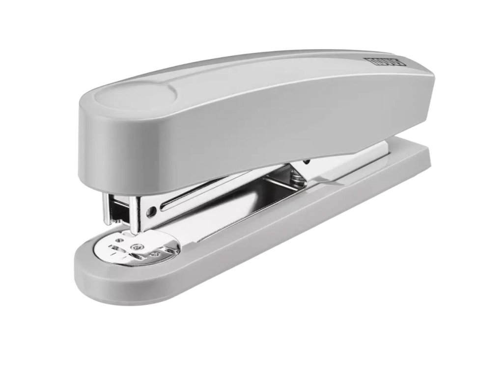 Ľahká zošívačka s kovovým zásobníkom a jednoduchým vedením spiniek. Kapacita náplne 100 spiniek 24/-6 alebo 150 spiniek 26/-6. Hĺbka zošívania 6,5 cm. Hmotnosť 175 g. Záruka 10 rokov.Farba: sivá