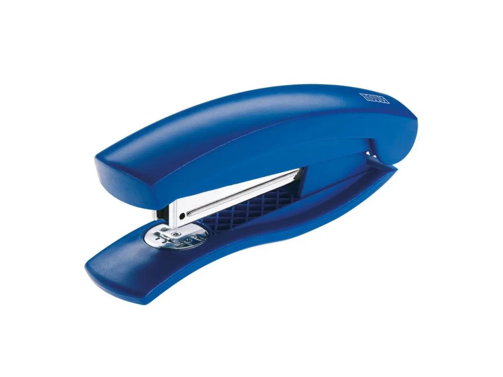 Kancelárska zošívačka na stôl aj do ruky v modernom dizajne. Zásobník spiniek s plastovým osadením a jednoduchým vedením spiniek. Kapacita náplne 100 spiniek 24/ 6 alebo 26/ 6. Hĺbka zošívania 6,5 cm. Hmotnosť 140 g.Farba: modrá