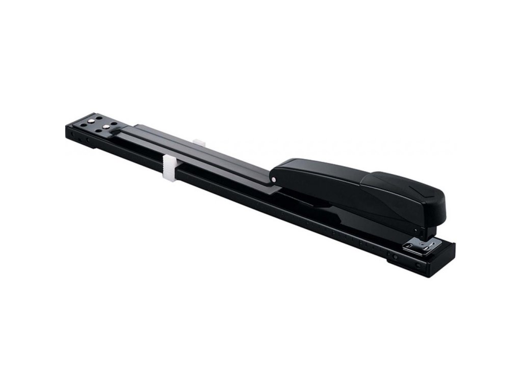 Zošívačka s dlhým ramenom na zošitie maximálne 20 listov. Hĺbka zošívania 30 cm. Spinky 24/ 6, 26/ 6. Farba čierna.Dodatočné parametre