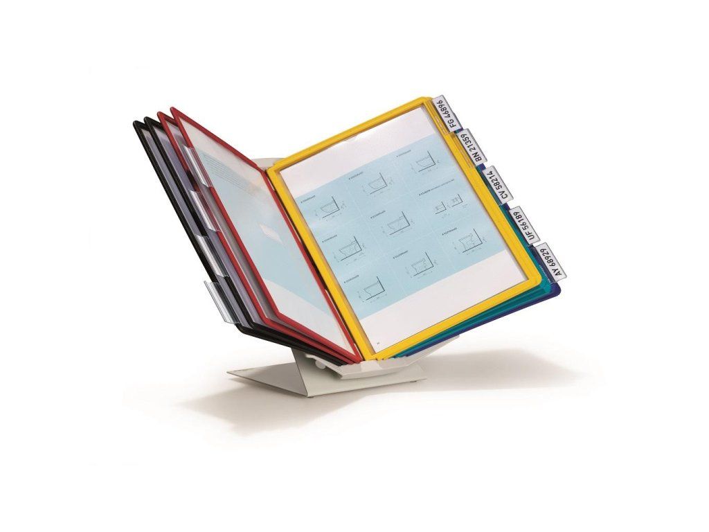 Variabilný a moderný panelový systém, ktorý je možné umiestniť na stôl alebo upevniť na stenu. Držiak panelov je možné natáčať, čo umožní horizontálne aj vertikálne listovanie. Je dodávaný s 10 panelmi. Farba stojana sivá, panely sú dodávané v mixe farieb (čierna, červená, žltá, zelená a tmavomodrá).Kapacita panelov: 10