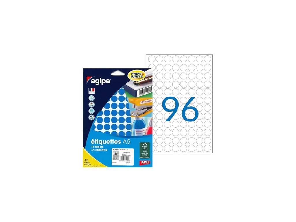 Biele a farebné kruhové etikety na formáte A5.Priemer: 15 mm
