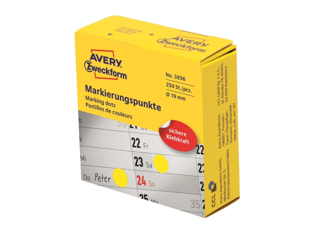 Etikety kruhové 19mm Avery žlté v dispenzore