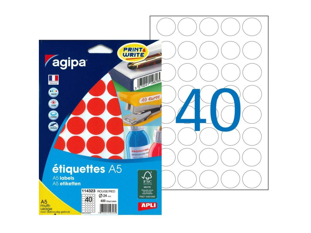 Etikety kruhové 24mm Agipa A5 červené