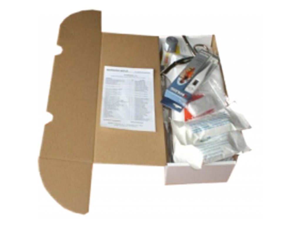 Náplň do lekárničky so základnou výbavou, pozostávajúca o. i. z náplastí, sterilného a nesterilného obväzového materiálu, dezinfekčného roztoku, resuscitačného rúška, nožníc, izotermickej fólie, teplomeru, gumových rukavíc, pinzety, kriedy a karty prvej pomoci. Vhodná do domácností, menších firiem s menšou mierou rizika, hotelov a pod.Dodatočné parametre