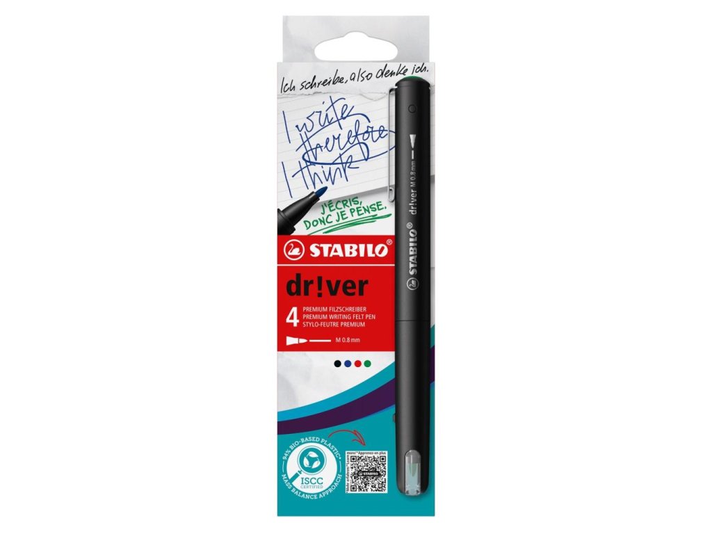Prémiový liner na písanie STABILO dr!ver je perfektným doplnkom pre všetky príležitosti písania. Či už v kancelárii, v triede alebo doma - liner je nadčasový, tenký a veľmi spoľahlivý písací nástroj.Liner má certifikáciu ISCC Plus: Na výrobu tela pera sa získalo 94 % plastu na bio báze (hmotnostná bilancia).