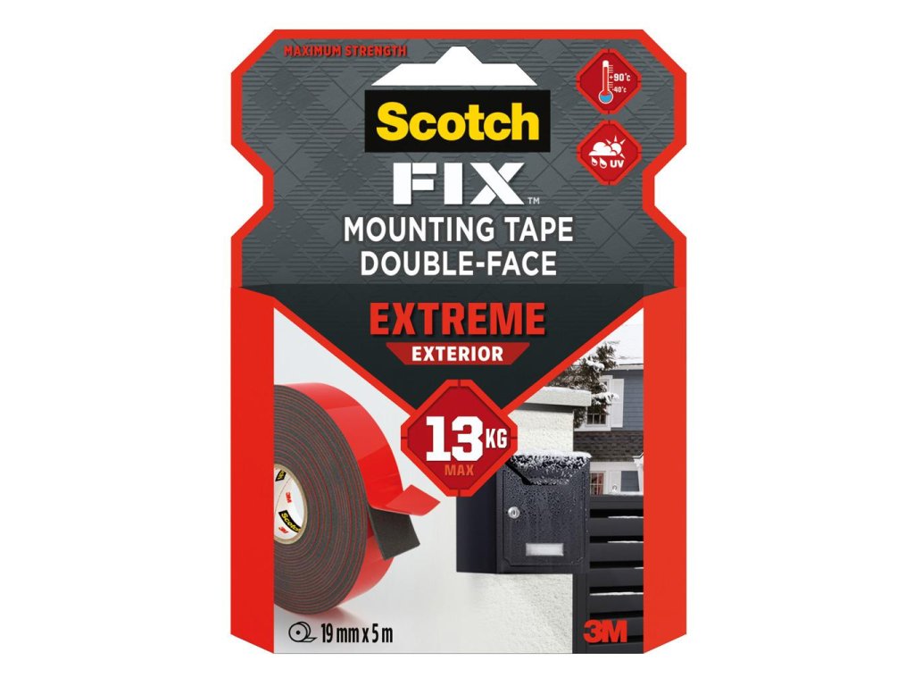 Supersilná montážna páska Scotch-Fix™ do exteriéru s pokročilou technológiou 3M™. Táto vysoko kvalitná, prispôsobivá permanentná páska s nosnosťou do 10 kg a je určená pre extrémne použitie v exteriéri. Ideálne sa hodí na použitie na maľované sadrokartónové dosky, maľované / hotové drevo, kov, akryl, hladký kameň a maľovaný betón. Rozmery 19 mm × 5 m.Dodatočné parametre