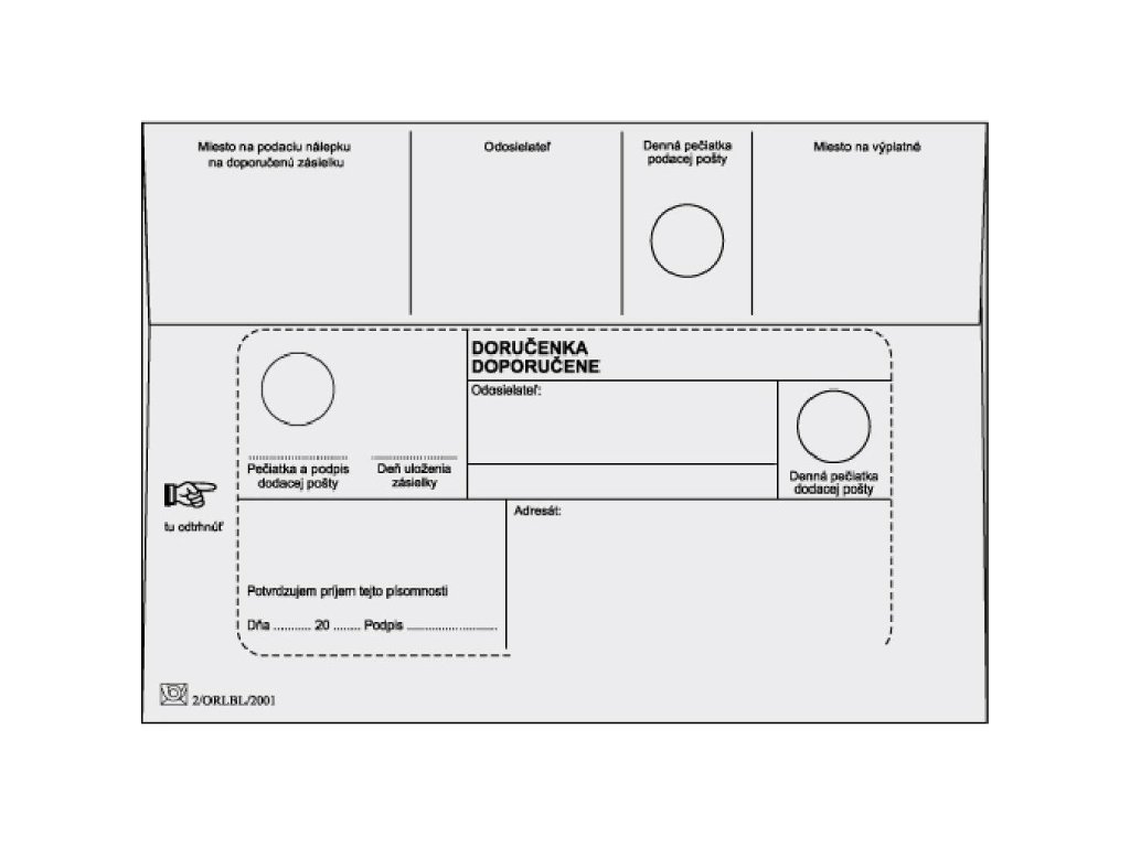 Biele papierové poštové obálky B6 s doručenkou rozmerov 125 × 176 mm s okienkom, popisom a lichobežníkovou klopou, 90 g/ m2. Balenie obsahuje 1000 ks.Dodatočné parametre