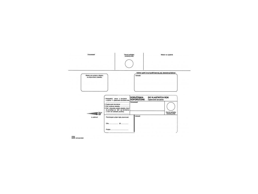 Biele papierové poštové obálky C5 s doručenkou do vlastných rúk - opakované doručenie rozmerov 162 × 229 mm s okienkom, popisom a lichobežníkovou klopou, 90 g/ m2. Balenie obsahuje 1000 ks.Dodatočné parametre