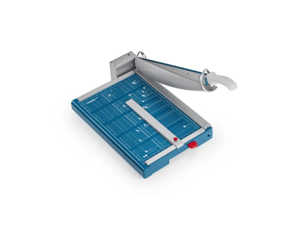 Vysokokvalitná, protišmyková a presná páková rezačka z pevného oceľového plechu. Základný vrchný a základný spodný brúsený nôž vyrobený z kvalitnej nožiarskej ocele Solingen. Rotujúci kryt okolo ostria chráni prsty pred náhodným porezaním. Presná mierka v cm/ inch a DIN formátoch, čiary umožňujúce rezanie uhlových rezov. Automatický prítlak. Výrez na spodnej časti na pohodlné prenášanie. K rezačke je možné objednať podporný stôl so zariadením na rezanie tenkých prúžkov a zariadenie umožnujúce vytvoriť laserový lúč, indikujúci reznú líniu.Dĺžka rezu: 460 mm