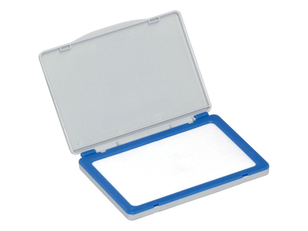 Suchá poduška na pečiatkovú farbu do nesamofarbiacich pečiatok. Farba sivá s plastovou obrubou modrej farby. Väčšie balenie 12 ks.Rozmery: 105 x 66 mm