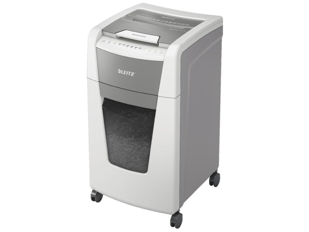 Plnoautomatická skartovačka na papier od firmy Leitz s jedinečnou čistou vyprázdňovacou funkciou. Je taká inteligentná, že potichu pracuje sama, len vložíte stoh papiera (vrátane kancelárskych sponiek a sponiek do zošívačky), zatvoríte veko a môžete ísť za svojou robotou. Ideálna na používanie v kanceláriách. Mimoriadne dôveryhodná a vysokovýkonná skartovačka s automatickým podávaním, s funkciou proti zaseknutiu papiera, tichá a s dlhou dobou prevádzky (60 minút). Automaticky skartuje 300 hárkov A4 na úrovni zabezpečenia P-5 (2 × 15 mm) s mikrorezom do veľkého 60l koša. Jednoduché ovládanie pomocou dotykových prvkov.