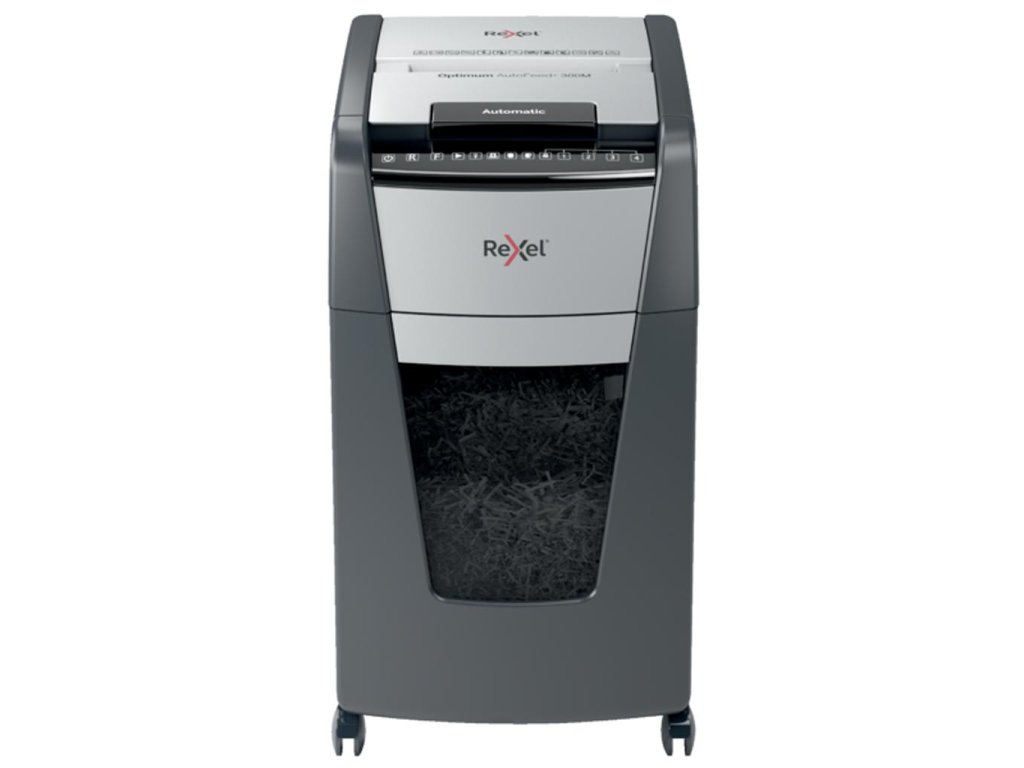 Skartovačka Optimum AutoFeed 300M automaticky skartuje až 300 hárkov papiera A4 (80 g/m2) mikrorezom P-5 (2 × 15 mm). Tento stroj na skartovanie s automatickým podávaním je sofistikovaný kancelársky drvič s výsuvným košom s objemom 60 l. Nie je potrebné ručne vkladať papier alebo vopred odstraňovať svorky a kancelárske sponky, táto automatická skartovačka papiera urobí všetko za vás.Automatické podávanie až 300 hárkov papiera formátu A4 (80 g/m2) naraz. Otvor na manuálne plnenie až po 8 hárkoch.