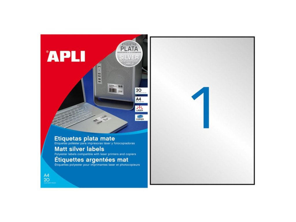 Etikety polyesterové 210x297mm APLI A4 20 hárkov strieborné