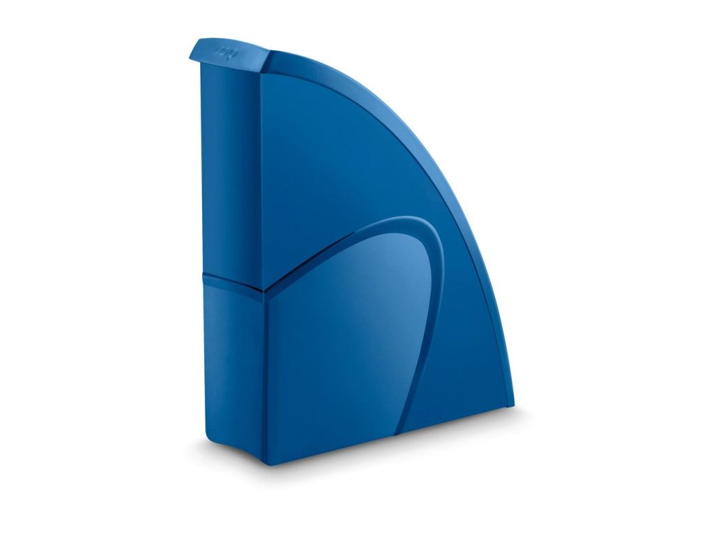 Stojan na časopisy s možnosťou vertikálneho alebo horizontálneho postavenia má elegantné línie, zvýraznené materiálom s kontrastným matným povrchom na hladkom pozadí. Vhodný na dokumenty do veľkosti 24 × 32 cm. Kapacita 700 listov (80 g / m²), rozmery 270 × 85 × 310 mm. Materiál 100% recyklovateľný vysokokvalitný plast. Väčšie balenie 10 ks. Farba modrá.Dodatočné parametre