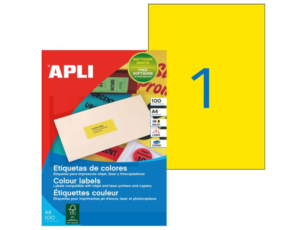 Etikety farebné 210x297mm APLI A4 100 hárkov žlté