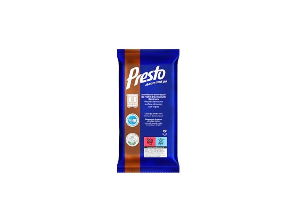 PRESTO DREVO VLHČENÉ UTIERKY 72 KS. Presto Clean vlhčené utierky na drevo sú praktickým a efektívnym pomocníkom pri každodennej starostlivosti o drevené povrchy. Tieto špeciálne navrhnuté utierky nielen čistia, ale aj ošetrujú drevo, čím pomáhajú udržiavať jeho prirodzený lesk a krásu. Sú ideálne na odstraňovanie prachu, škvŕn a nečistôt z rôznych drevených povrchov v domácnosti, vrátane nábytku, políc, dverí a dekoratívnych predmetov. Vďaka svojmu zloženiu utierky Presto Clean obnovujú lesk dreva, chránia ho pred vysychaním a zabraňujú usádzaniu prachu. Ich použitie je veľmi jednoduché - stačí nimi pretrieť povrch a nechať zaschnúť bez potreby ďalšieho leštenia. Navyše, utierky zanechávajú príjemnú vôňu a nepoškodzujú lakované ani neošetrené drevo. Hlavné vlastnosti: Efektívne čistenie a ošetrenie drevených povrchov. Obnovujú prirodzený lesk a chránia pred vysychaním. Odstraňujú prach, škvrny a nečistoty. Jednoduché použitie bez potreby ďalšieho leštenia. Zanechávajú príjemnú vôňu.Dodatočné parametre