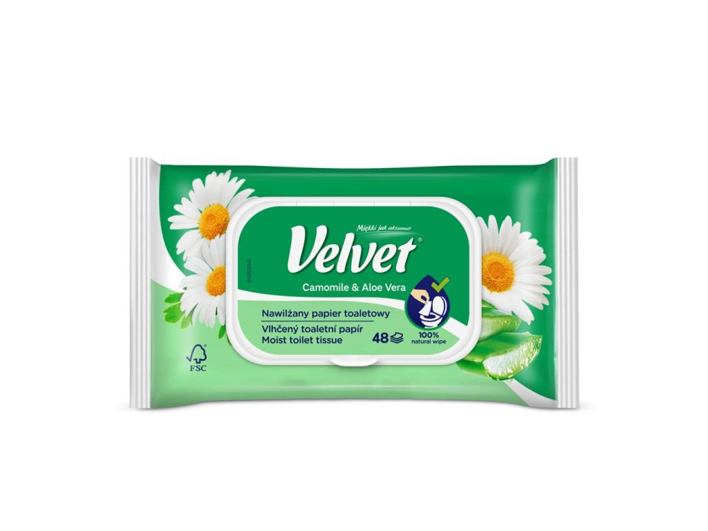 Vlhčený toaletný papier VELVET Camomile a Aloe vera 48 ks