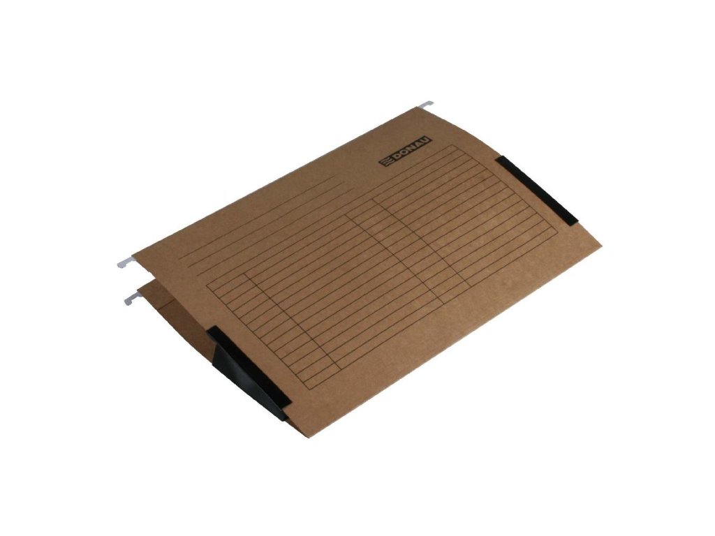 Závesný obal na zakladanie voľných listov do formátu A4. Plátené bočnice zabraňujú vypadnutiu dokumentov z obalov, kovové závesné háčiky garantujú dlhodobé používanie. Súčasťou obalu je plastový index a papierový štítok.Farba: hnedá