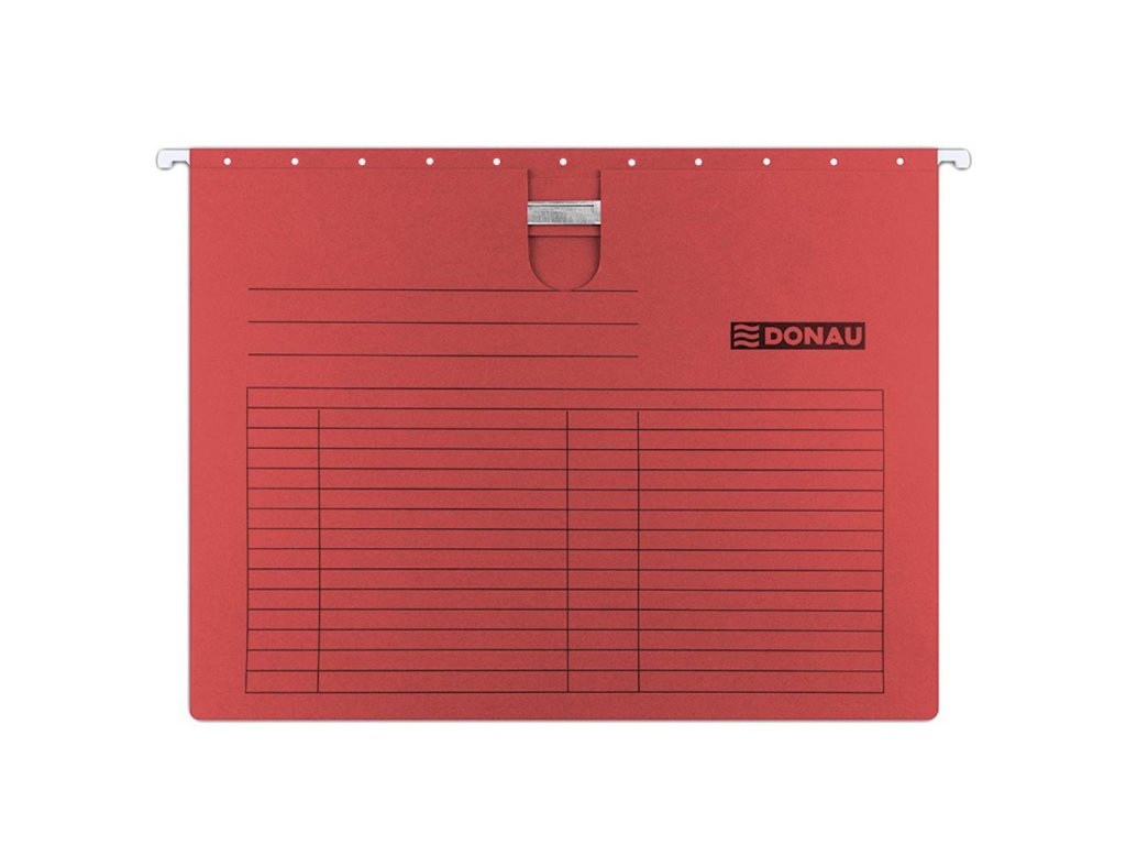 Závesný obal na zakladanie dierovaných dokumentov do formátu A4 s výrezom pre palec na jednoduchšie uchopenie. Pevne zachytený chrbát rýchloviazača umožňuje zakladanie jednotlivých spisov, kovové závesné háčiky garantujú dlhodobé používanie. Súčasťou obalu je plastový index.Farba: červená